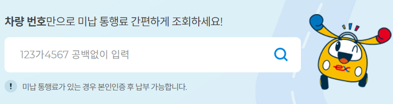 미납 통행료가 있는지 여부는 회원 가입을 하지 않고도 차량 번호만 가지고 바로 조회가 가능합니다.