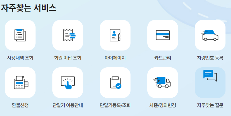 고속도로 통행료 조회도 위 사이트에서 제공하는데 고객센터 - 통행요금 조회 메뉴로 이동해야 합니다. 이게 눈에 잘 안 들어와요. 통행료 홈페이지면, 통행료 조회 바로가기 링크가 있어야 하는 것 아닌가요?