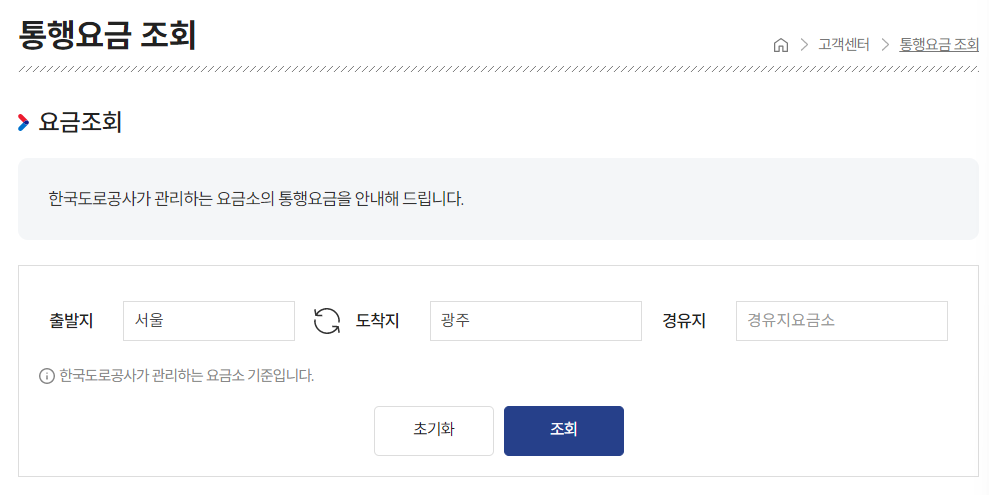 아무튼 아래에서 통행료 출발지와 목적지만 입력하면 바로 확인 가능합니다.