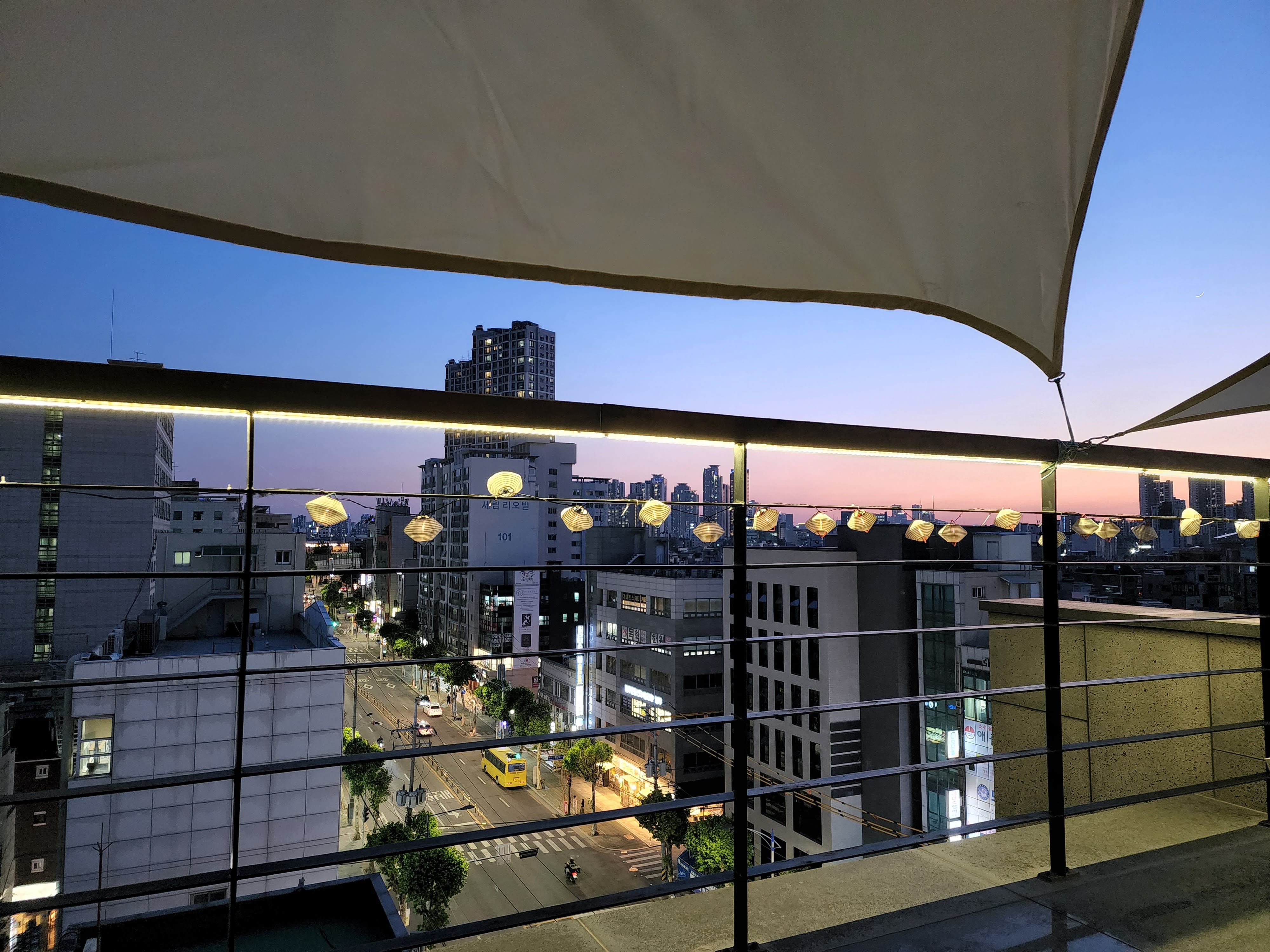 난간에는 귀여운 조명을 걸어놔서 마치 캠핑을 온 것 같은 느낌을 줬습니다.