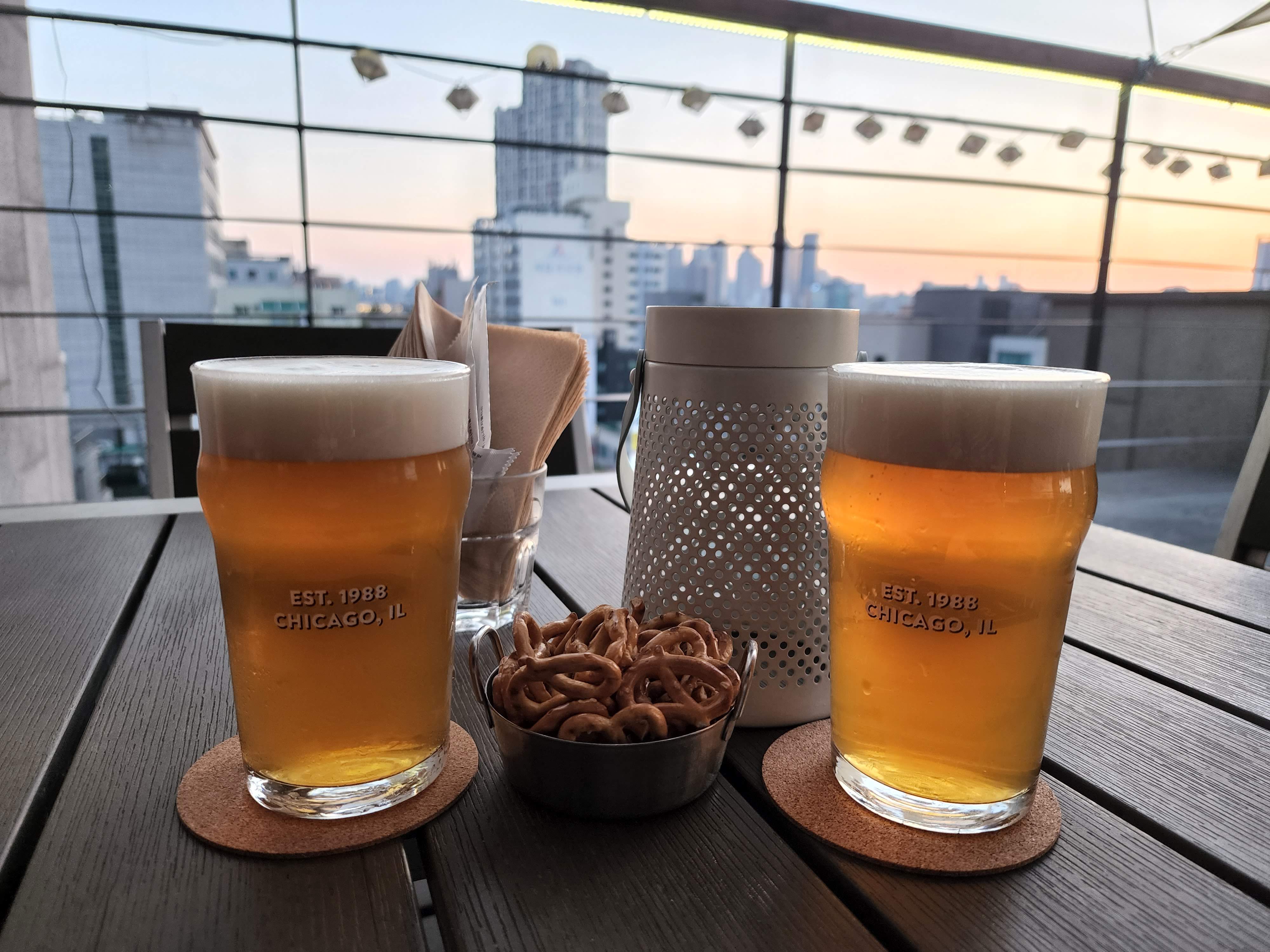 주문한 맥주가 나와서 멋진 배경을 뒤로 사진도 한 번 찍어 봤습니다. 따로 안주 안시키고 맥주만 주문해도 괜찮은 곳입니다.